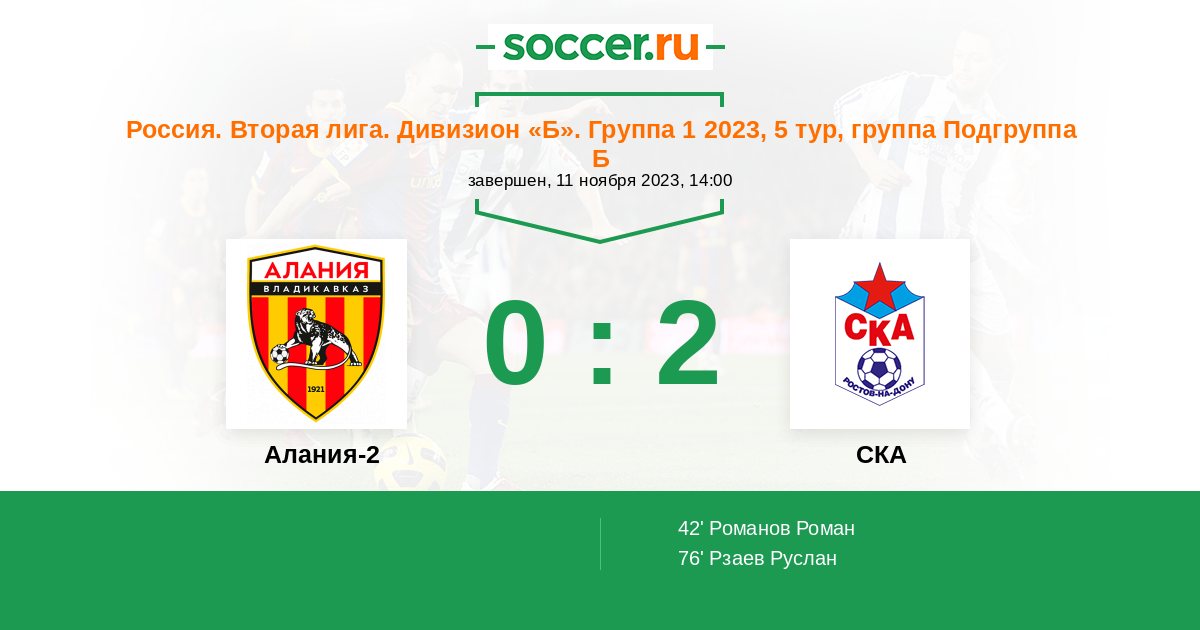 Протокол матча Алания-2 против СКА