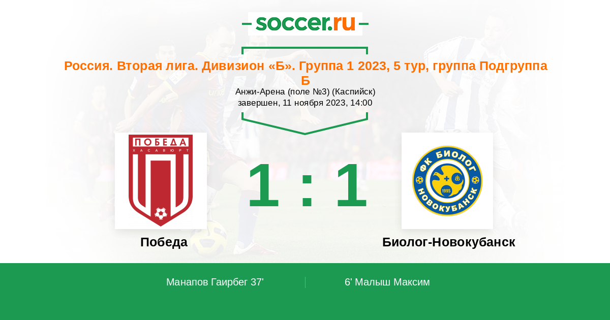 Протокол матча Победа против Биолог-Новокубанск