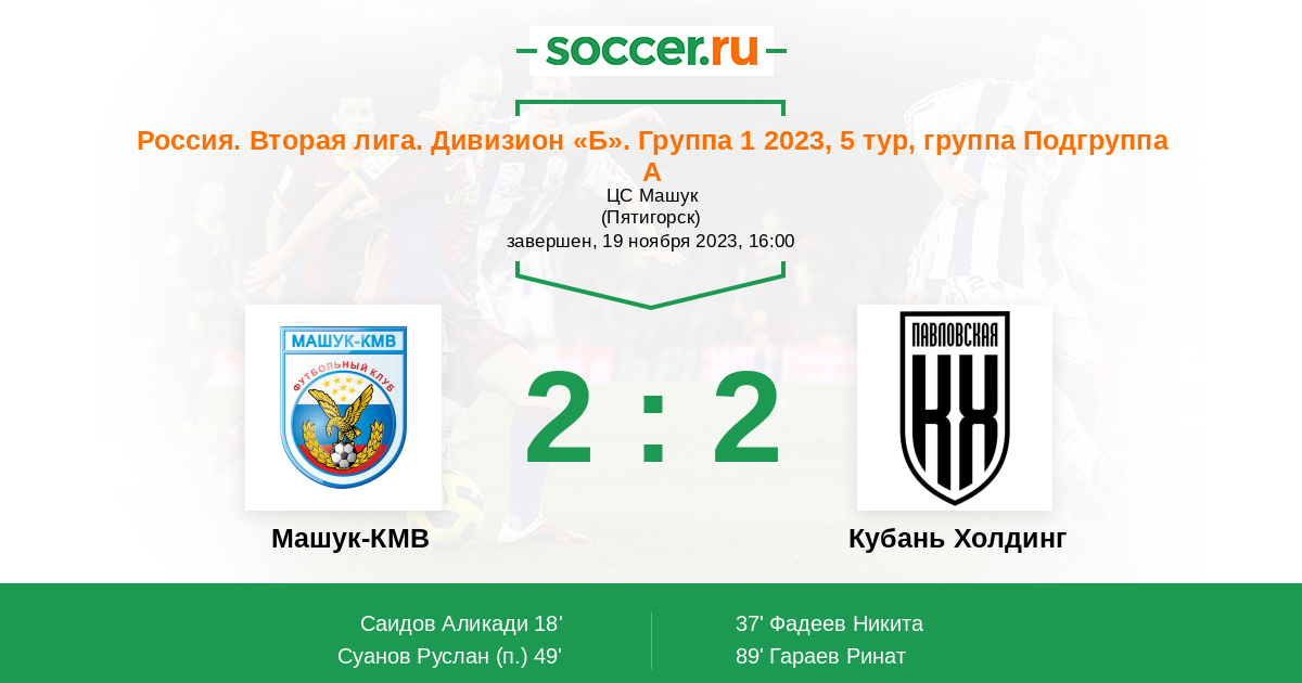 Протокол матча Машук-КМВ против Кубань Холдинг