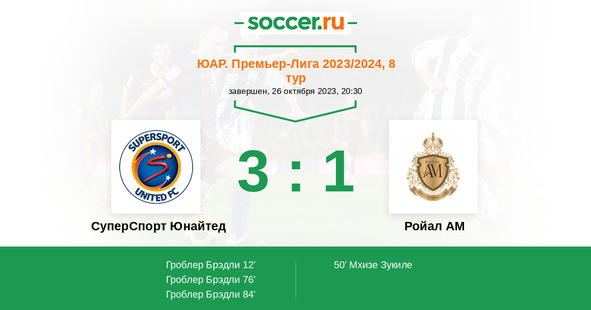Протокол матча СуперСпорт Юнайтед против Ройал АМ