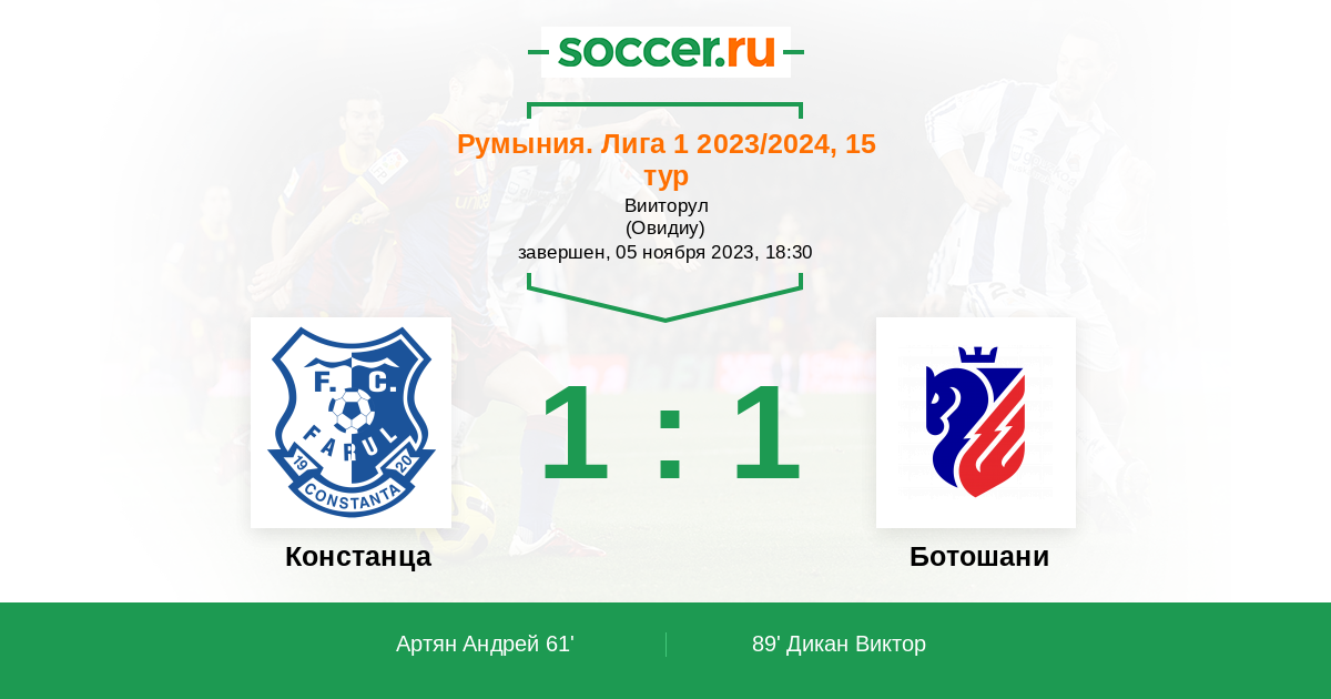 89' (1:1) Дикан Виктор (6) (Флореску Эдуард (8))
