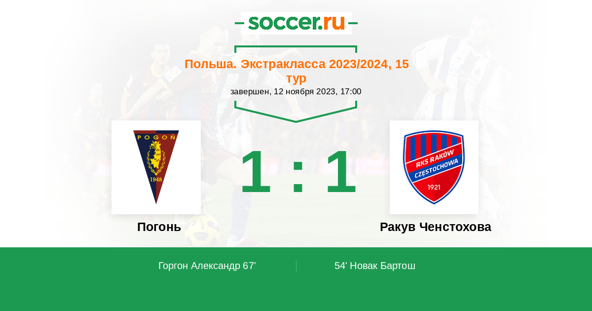 Протокол матча Погонь против Ракув Ченстохова