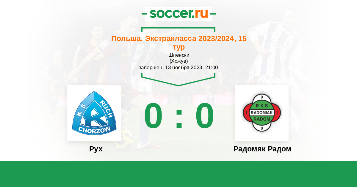 Протокол матча Рух против Радомяк Радом