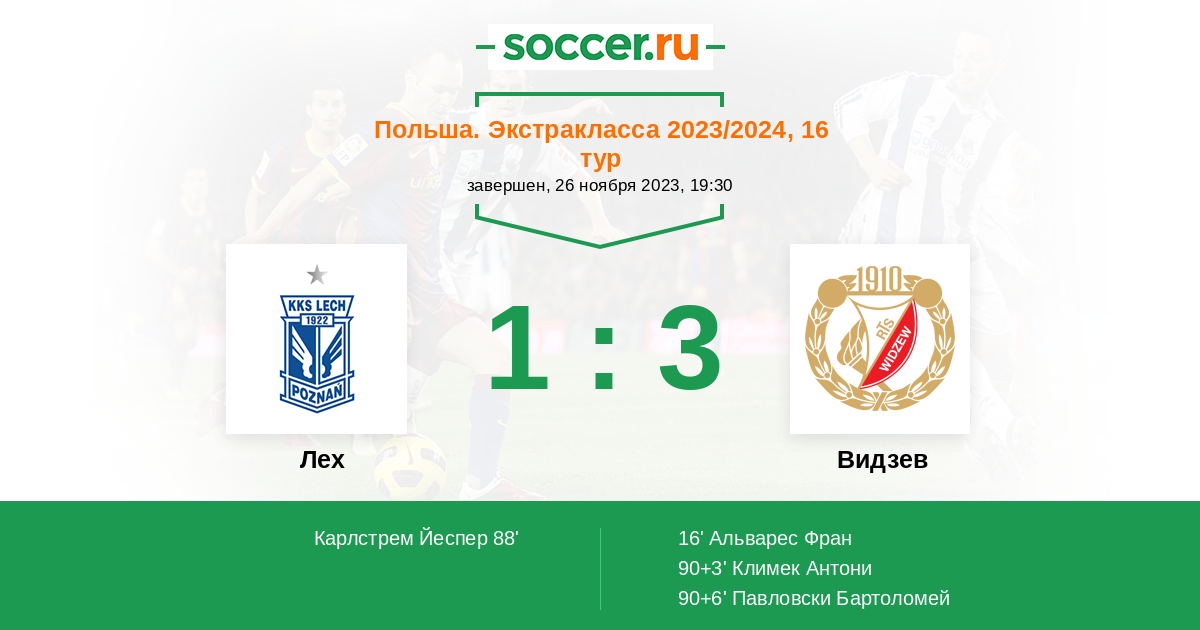 Протокол матча Лех против Видзев