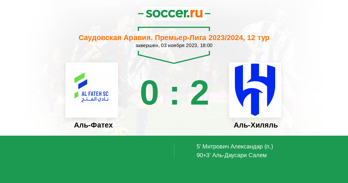 Протокол матча Аль-Фатех против Аль-Хиляль