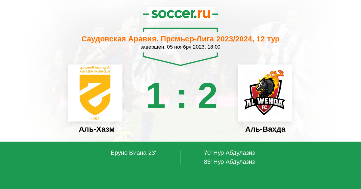 Протокол матча Аль-Хазм против Аль-Вахда