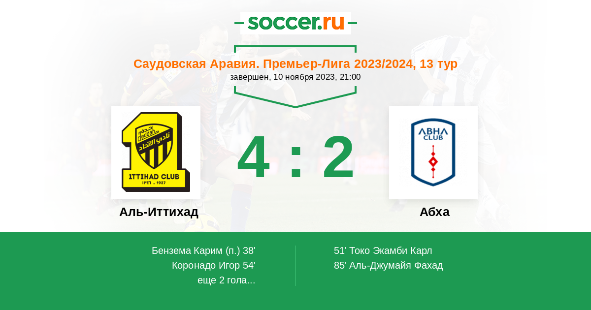 Протокол матча Аль-Иттихад против Абха