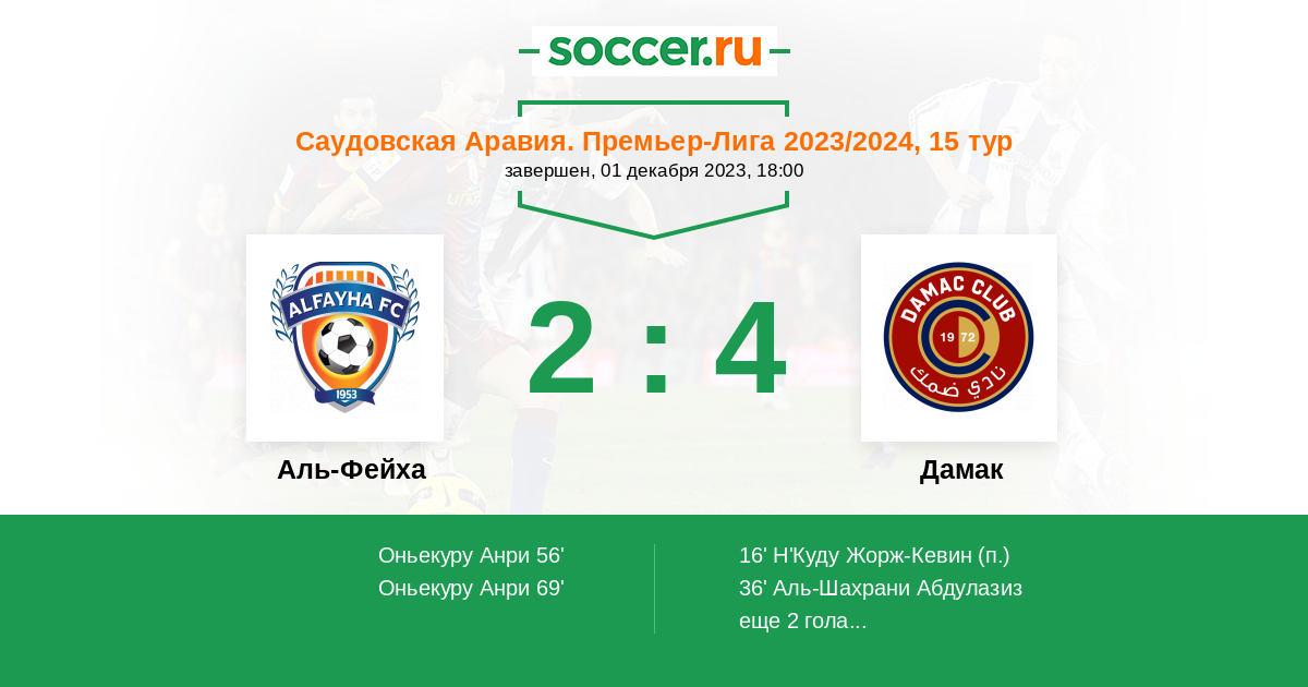 36' (0:2) Аль-Шахрани Абдулазиз (14) (Н'Куду Жорж-Кевин (10))