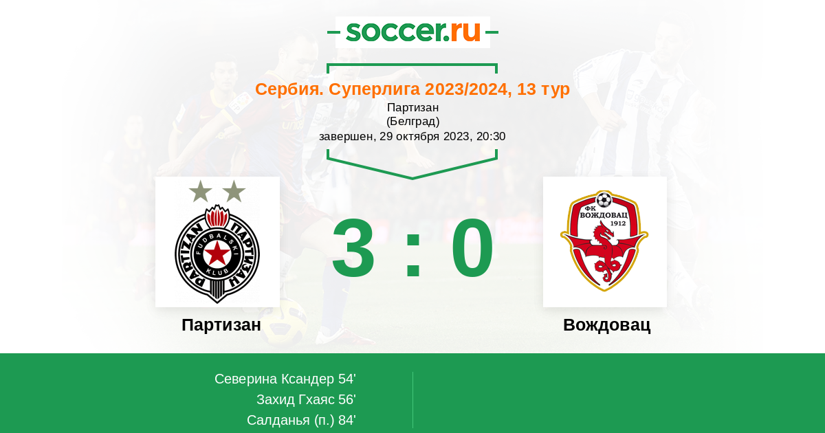 Протокол матча Партизан против Вождовац