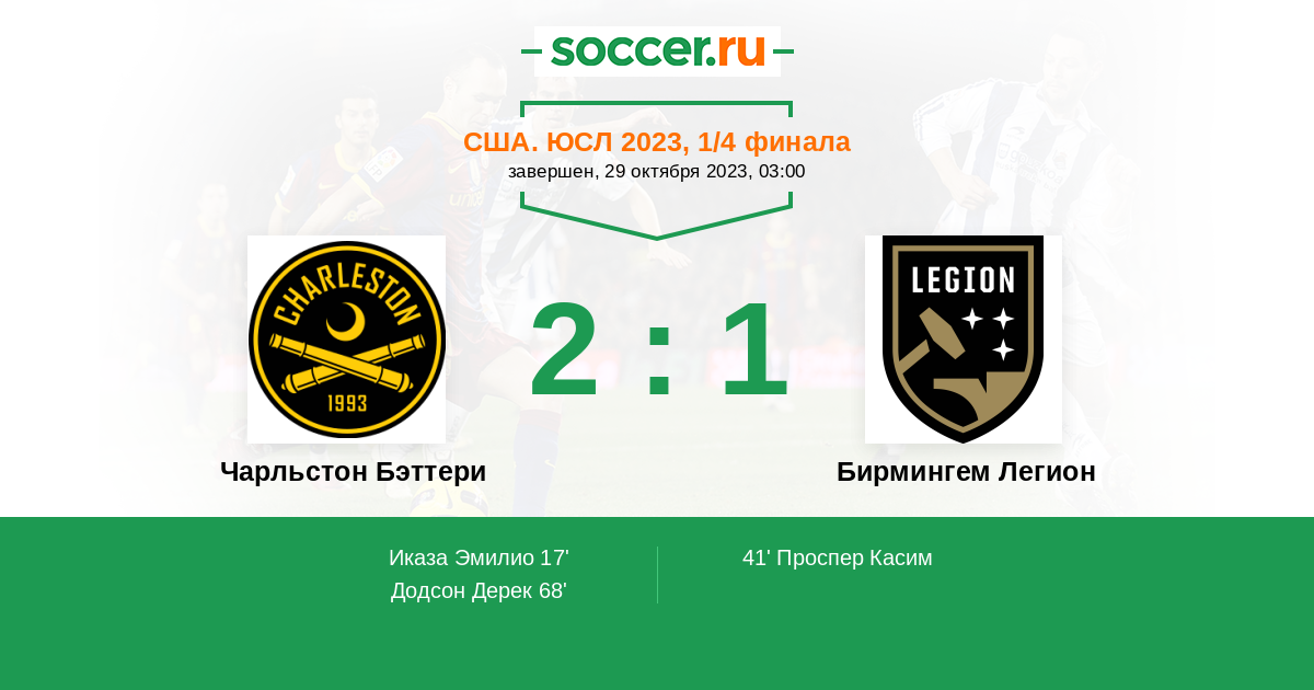 Протокол матча Чарльстон Бэттери против Бирмингем Легион