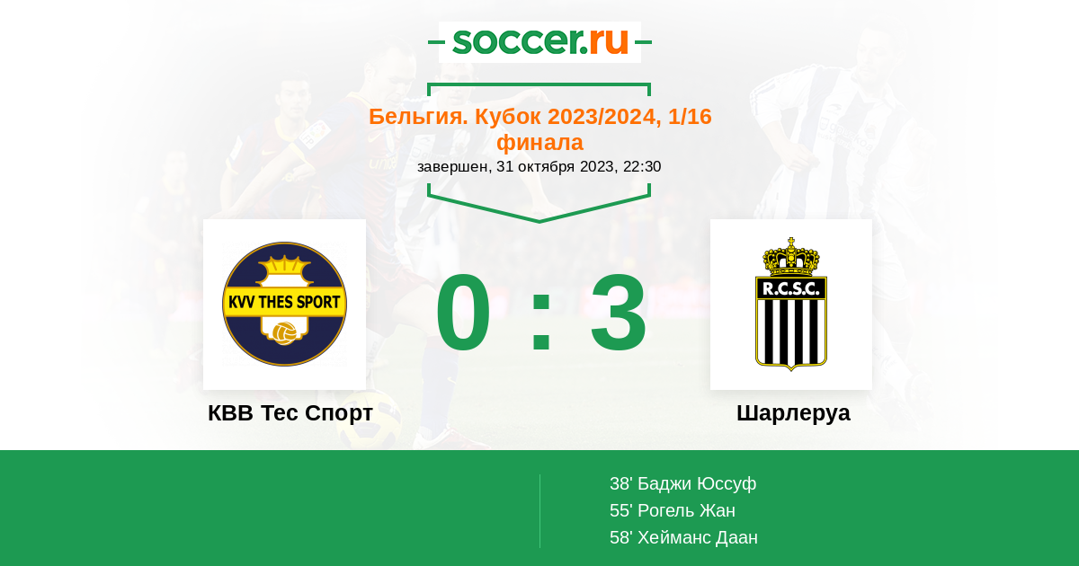Протокол матча КВВ Тес Спорт против Шарлеруа