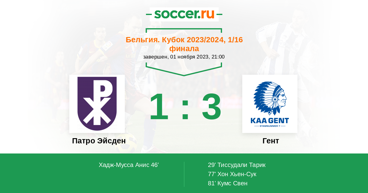 Протокол матча Патро Эйсден против Гент
