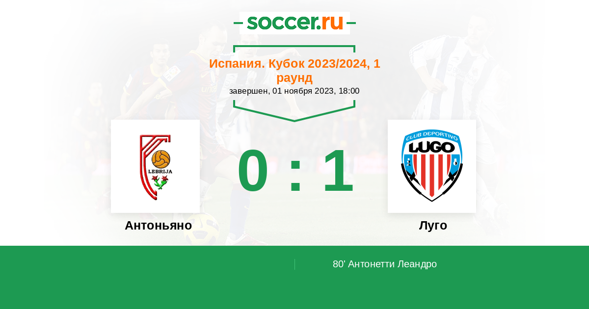 Протокол матча Антоньяно против Луго