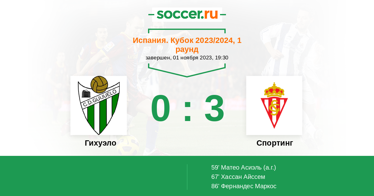 Протокол матча Гихуэло против Спортинг