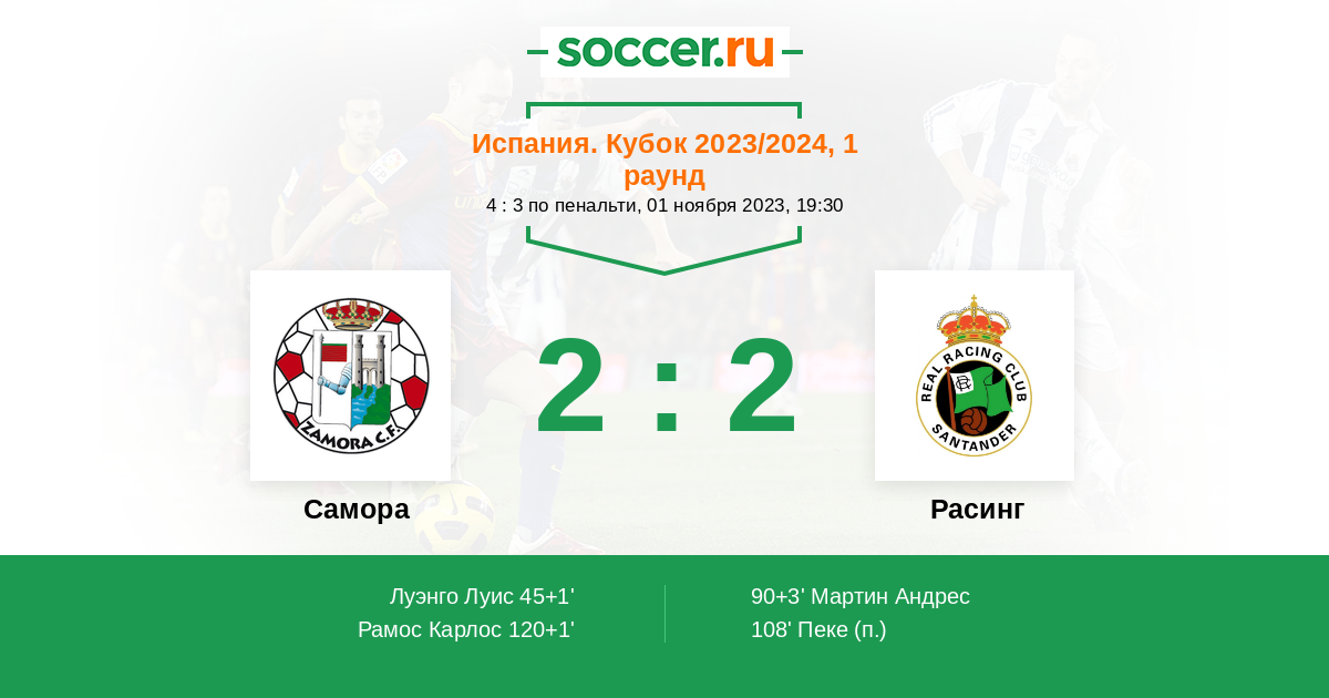 Протокол матча Самора против Расинг