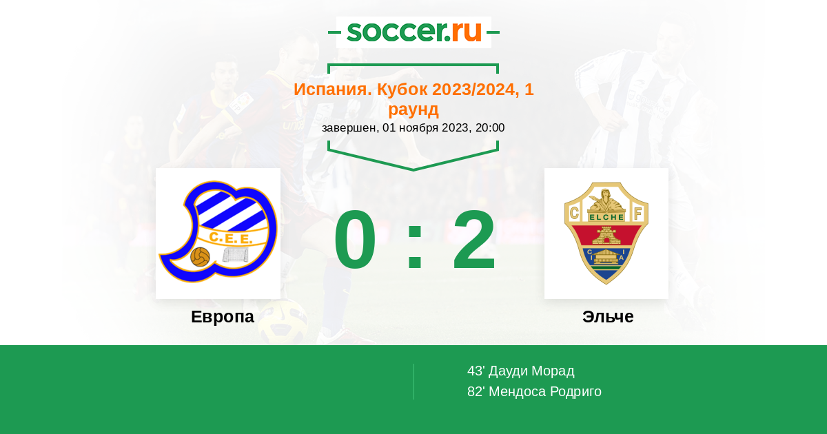 Протокол матча Европа против Эльче