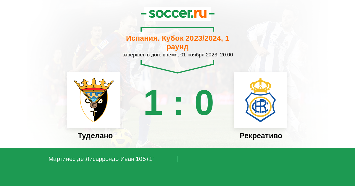 Протокол матча Туделано против Рекреативо