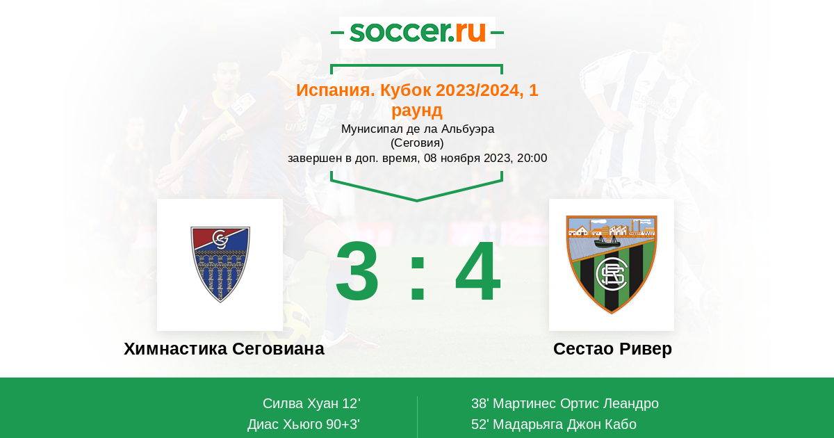 Протокол матча Химнастика Сеговиана против Сестао Ривер
