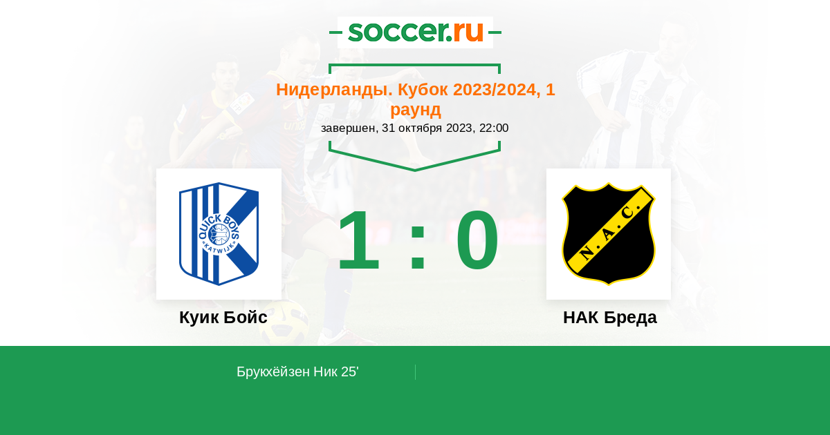 Протокол матча Куик Бойс против НАК Бреда