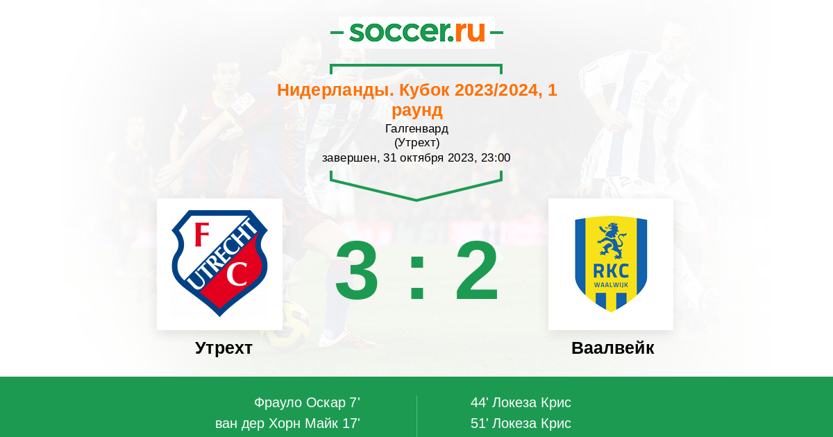 Протокол матча Утрехт против Ваалвейк