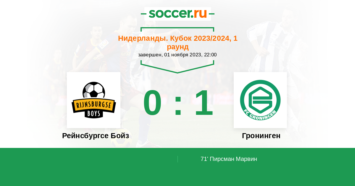 Протокол матча Рейнсбургсе Бойз против Гронинген