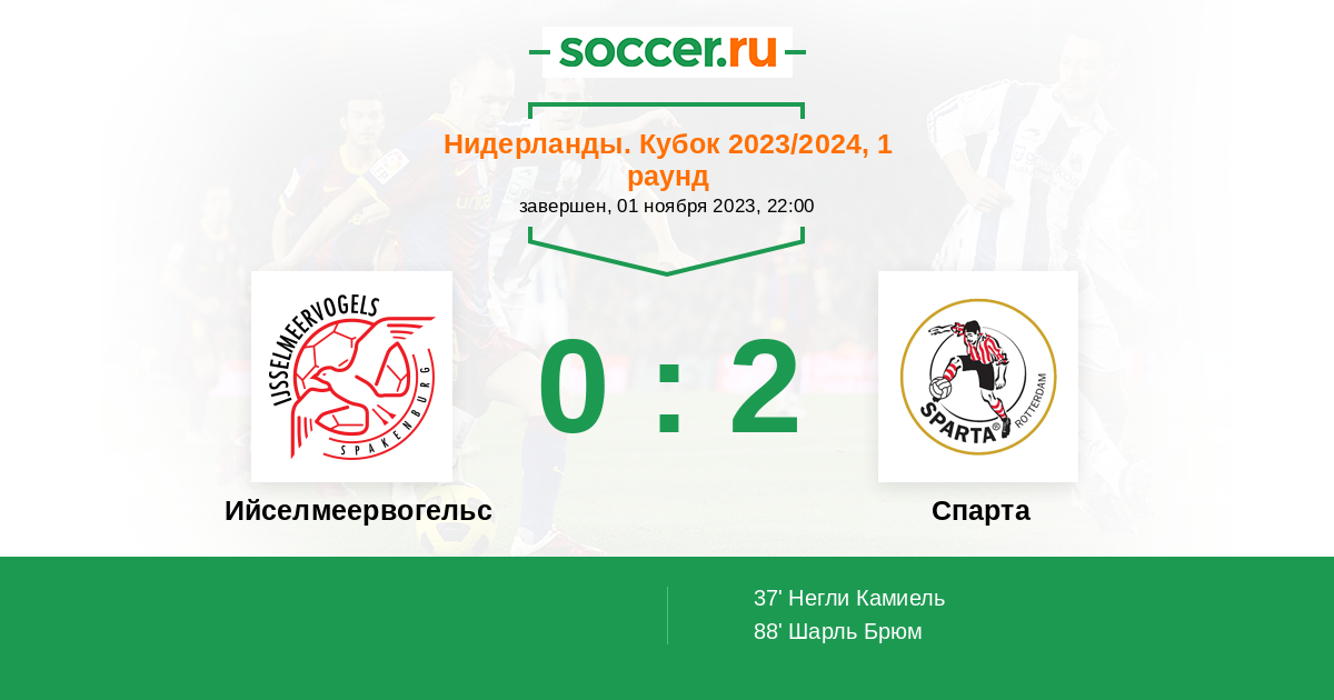 Протокол матча Ийселмеервогельс против Спарта