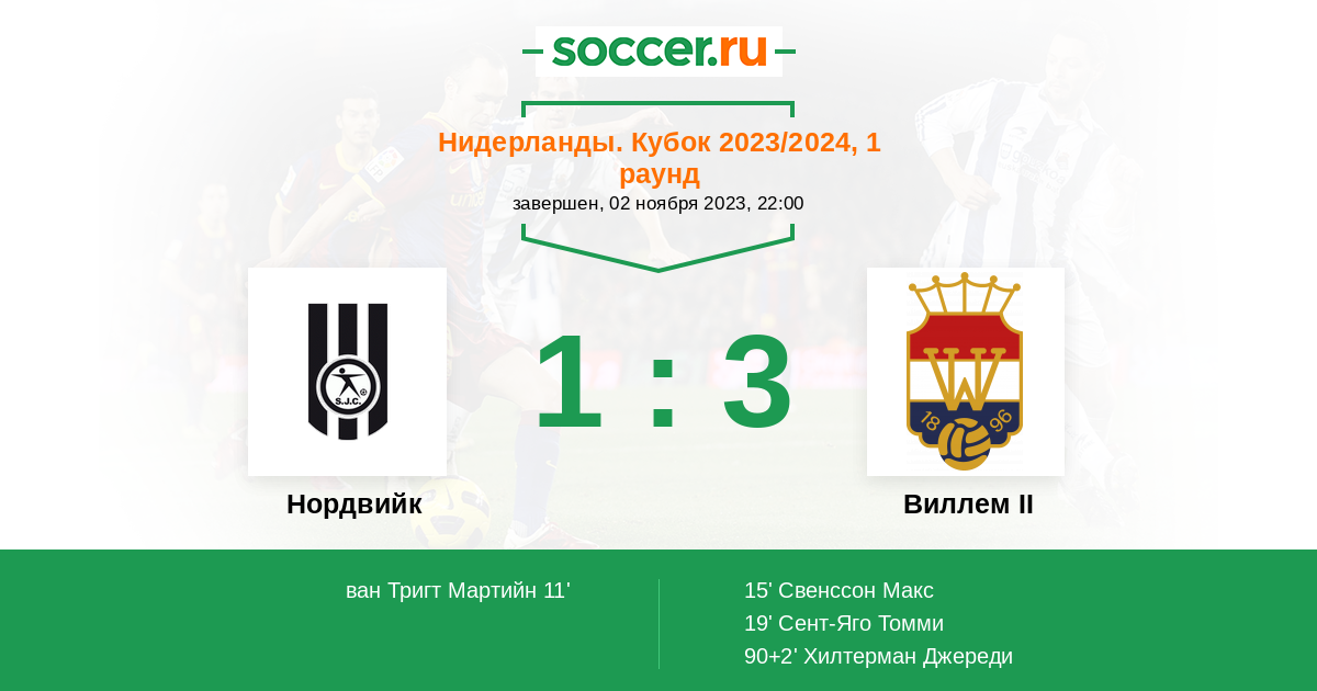 Протокол матча Нордвийк против Виллем II