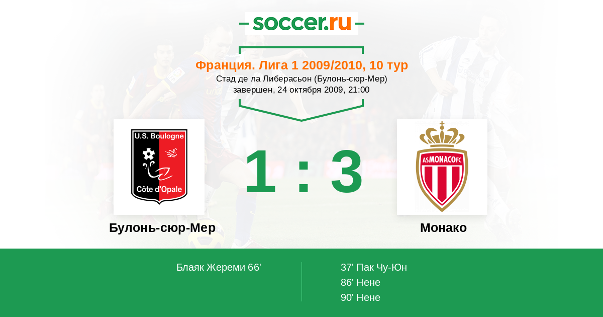 Протокол матча Булонь-сюр-Мер против Монако