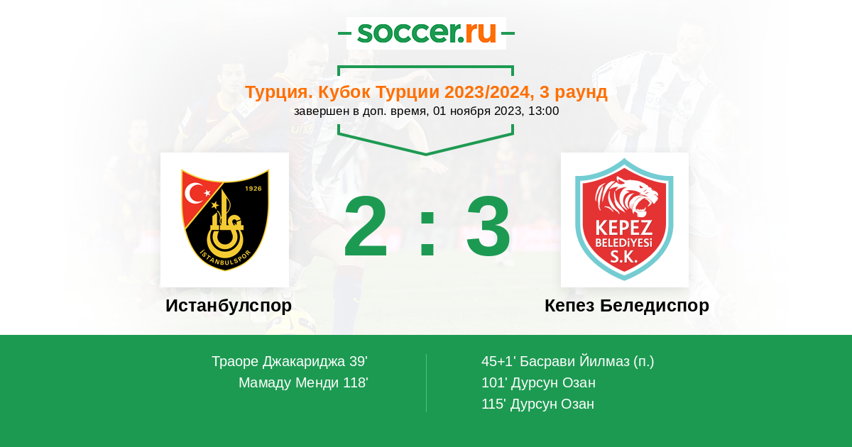 Протокол матча Истанбулспор против Кепез Беледиспор