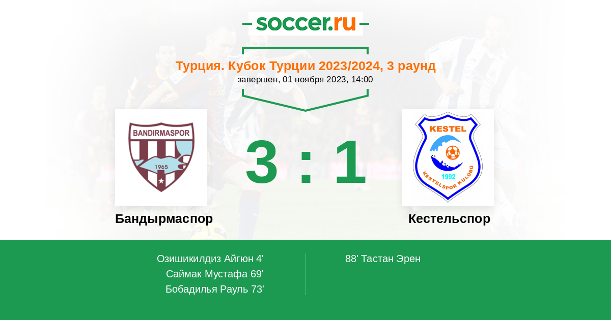 88' (3:1) Тастан Эрен (6)