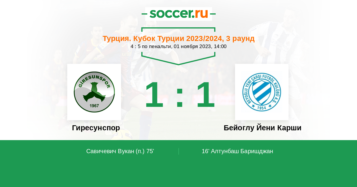 Протокол матча Гиресунспор против Бейоглу Йени Карши