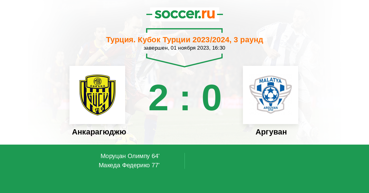 Протокол матча Анкарагюджю против Аргуван
