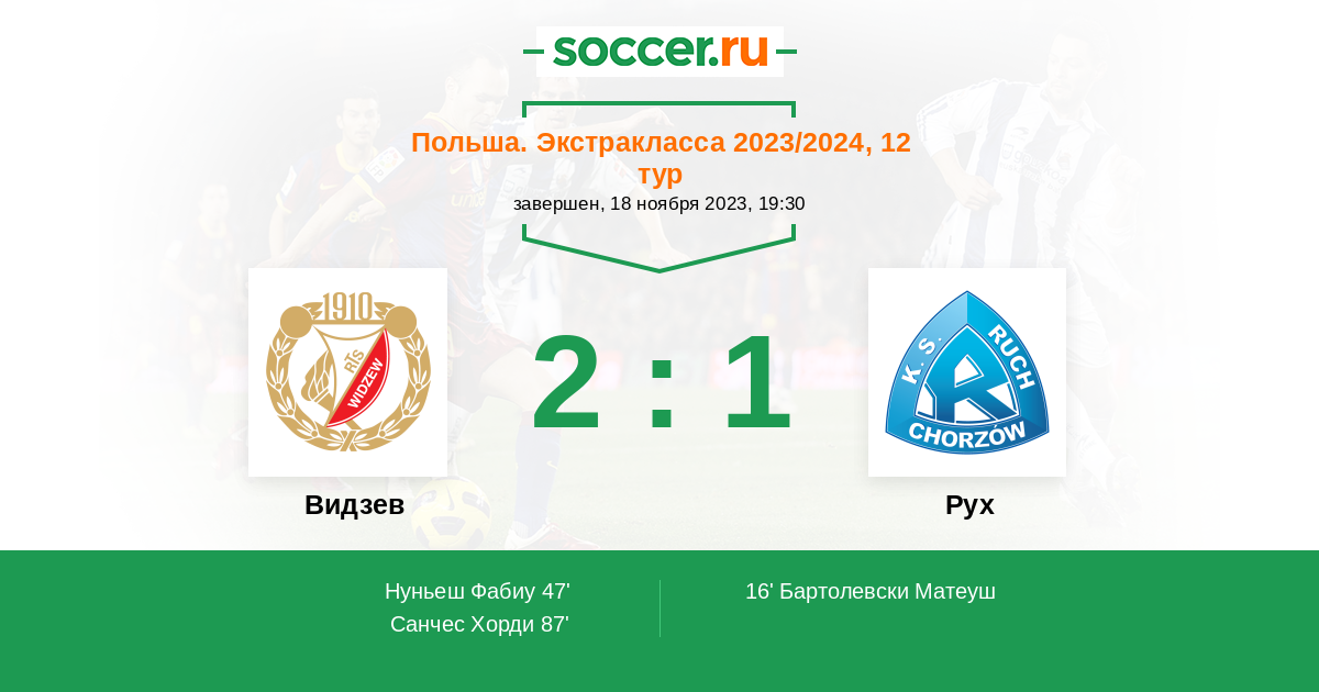 Протокол матча Видзев против Рух