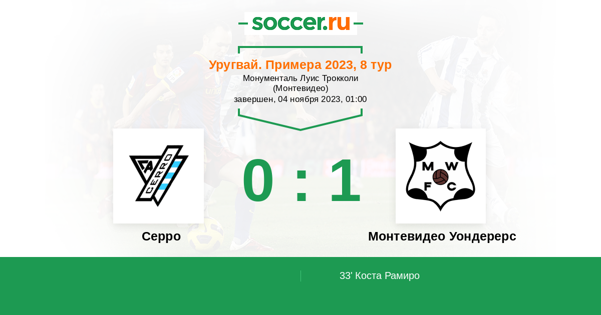 Протокол матча Серро против Монтевидео Уондерерс
