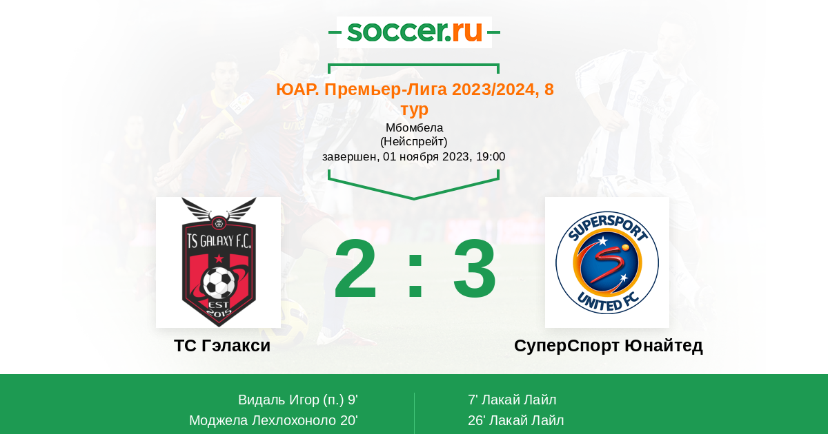 Протокол матча ТС Гэлакси против СуперСпорт Юнайтед