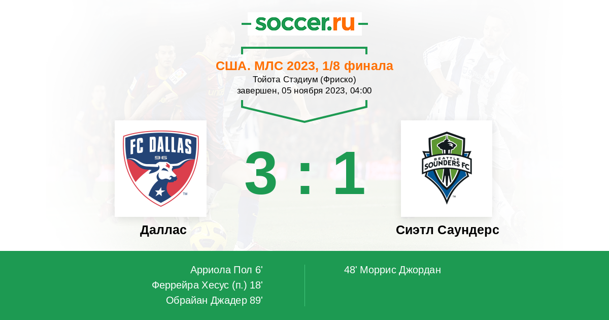 Протокол матча Даллас против Сиэтл Саундерс