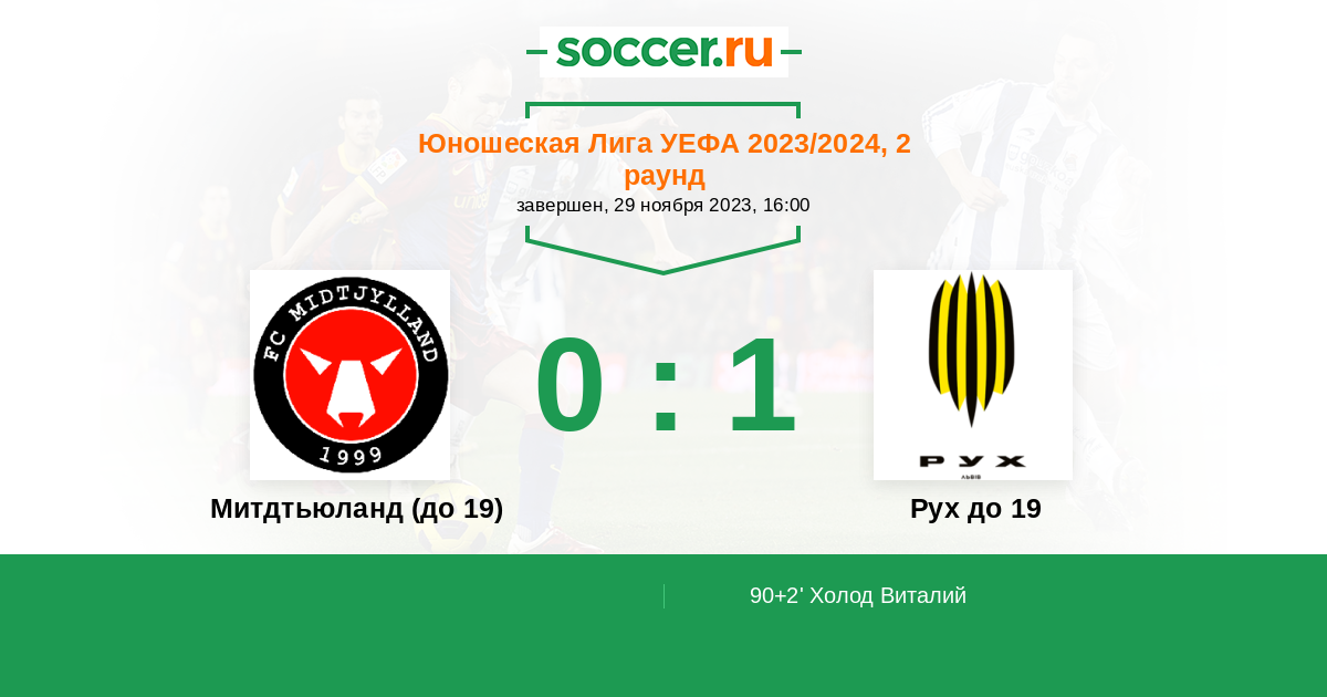 Протокол матча Митдтьюланд (до 19) против Рух до 19