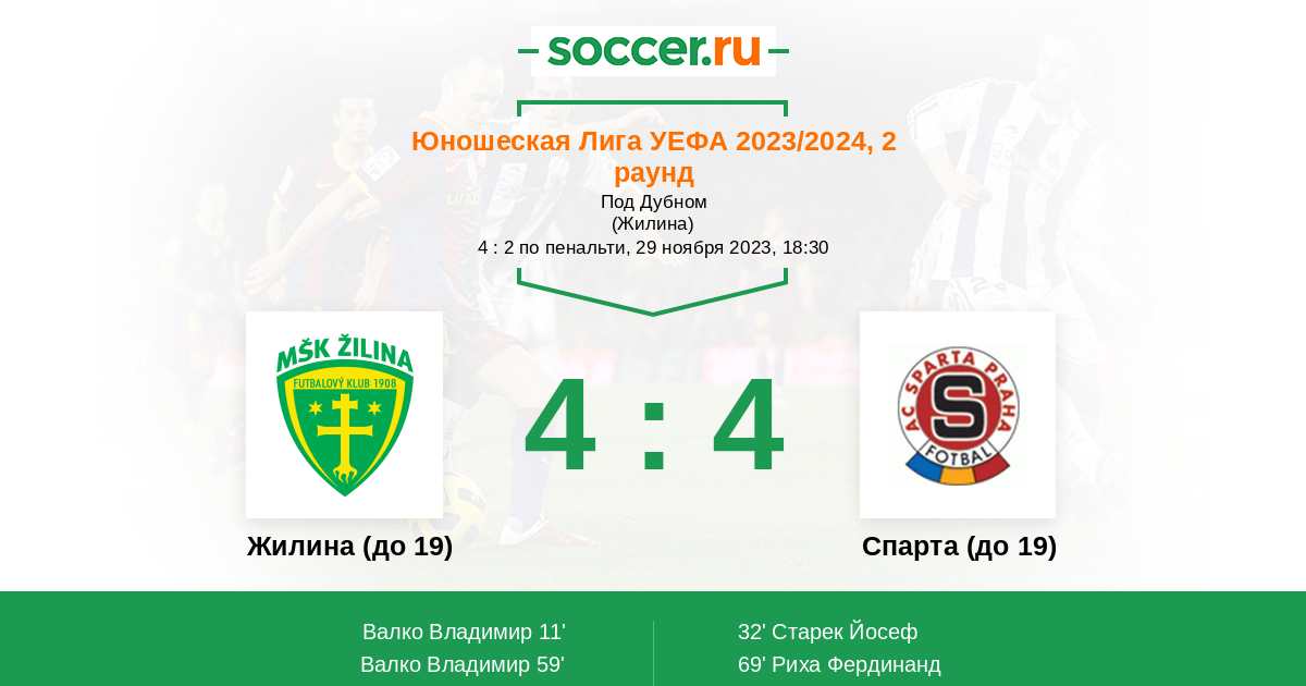 Протокол матча Жилина (до 19) против Спарта (до 19)