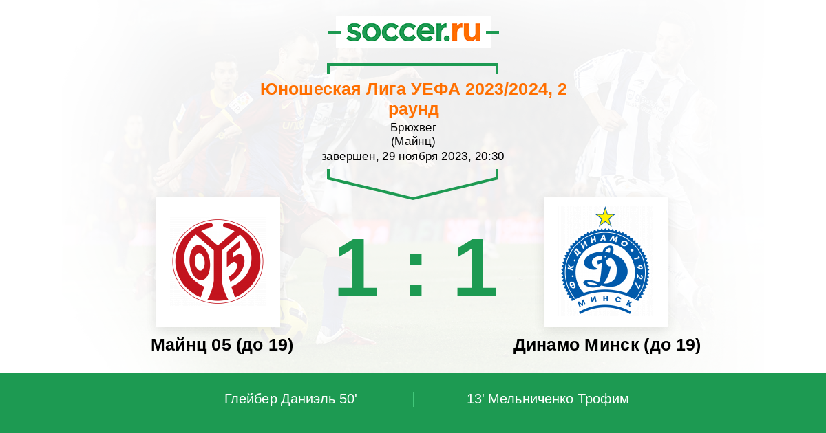 Протокол матча Майнц 05 (до 19) против Динамо Минск (до 19)