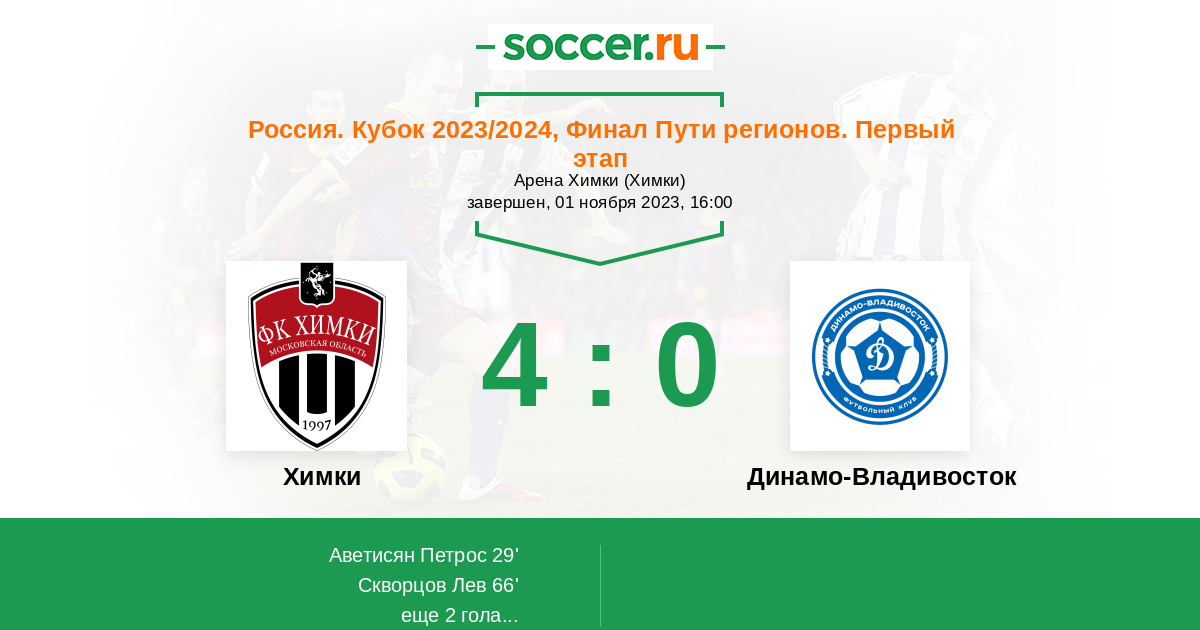 Протокол матча Химки против Динамо Владивосток