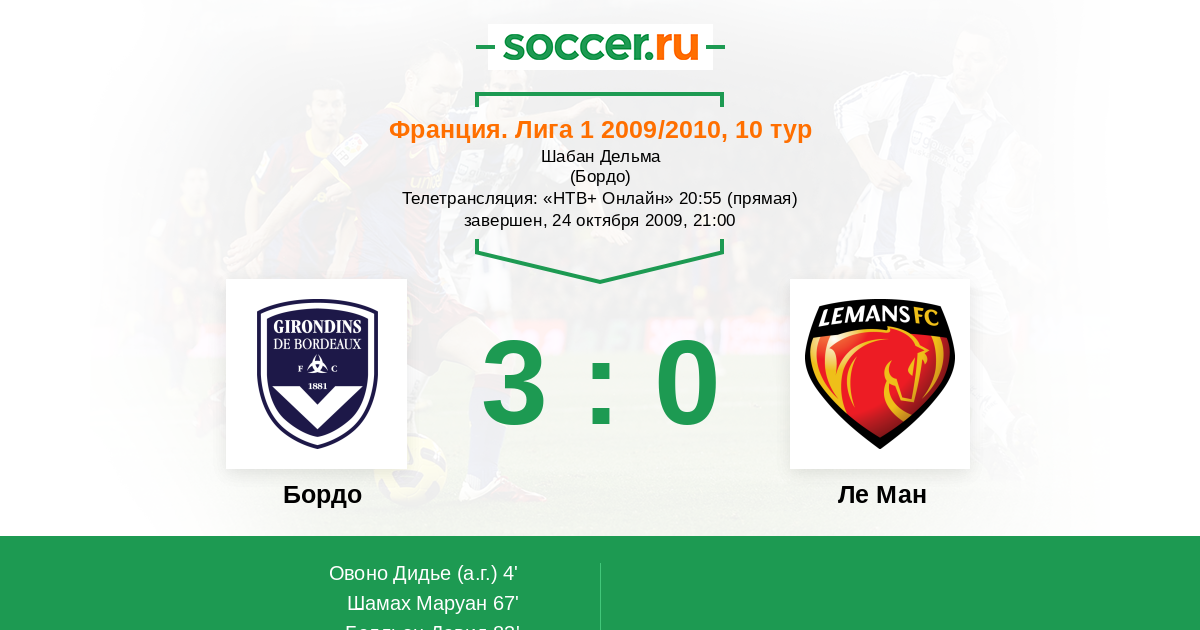 Протокол матча Бордо против Ле Ман