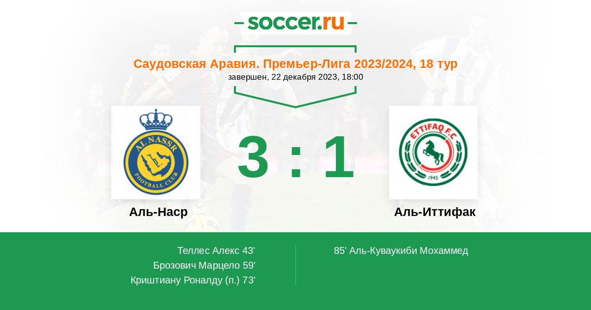 Протокол матча Аль-Наср против Аль-Иттифак