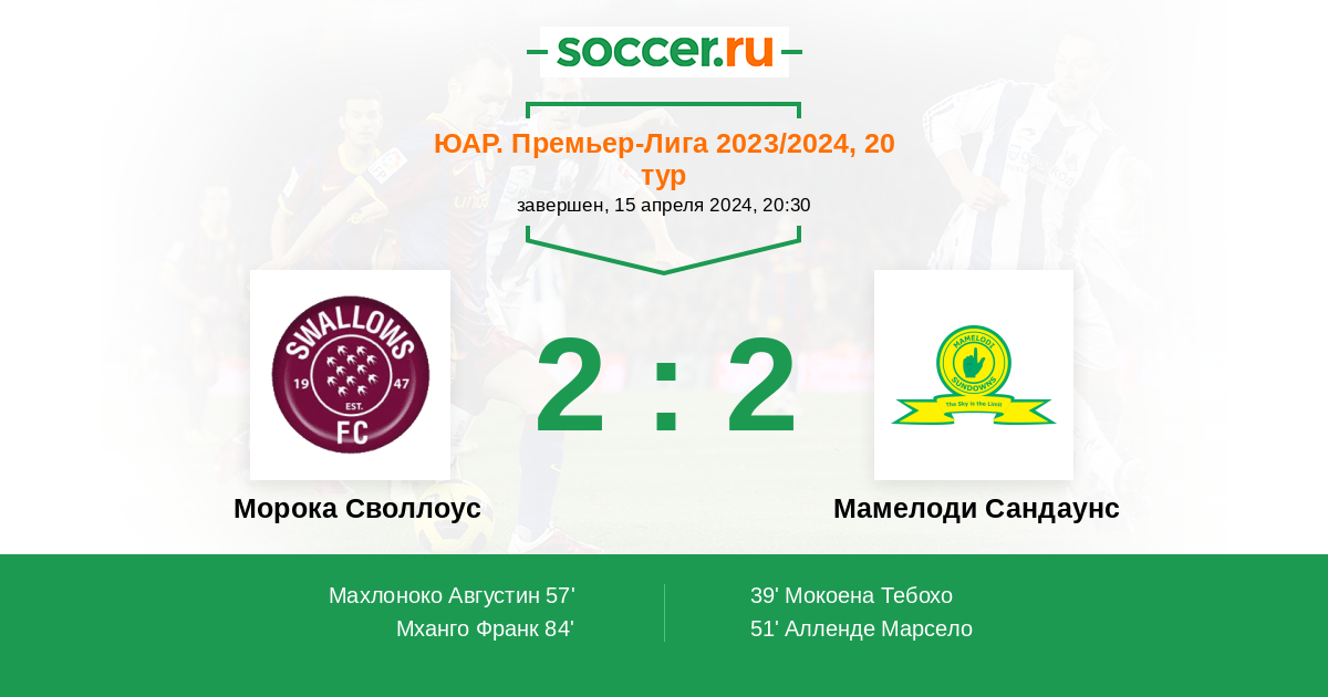 Протокол матча Морока Своллоус против Мамелоди Сандаунс