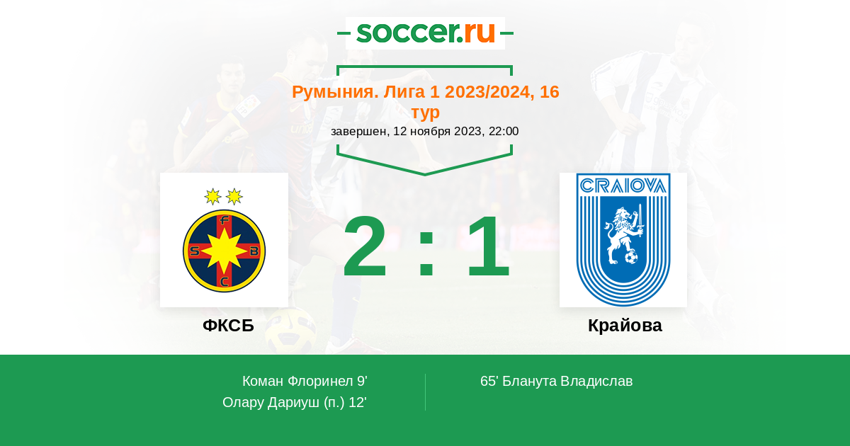 Протокол матча ФКСБ против Крайова