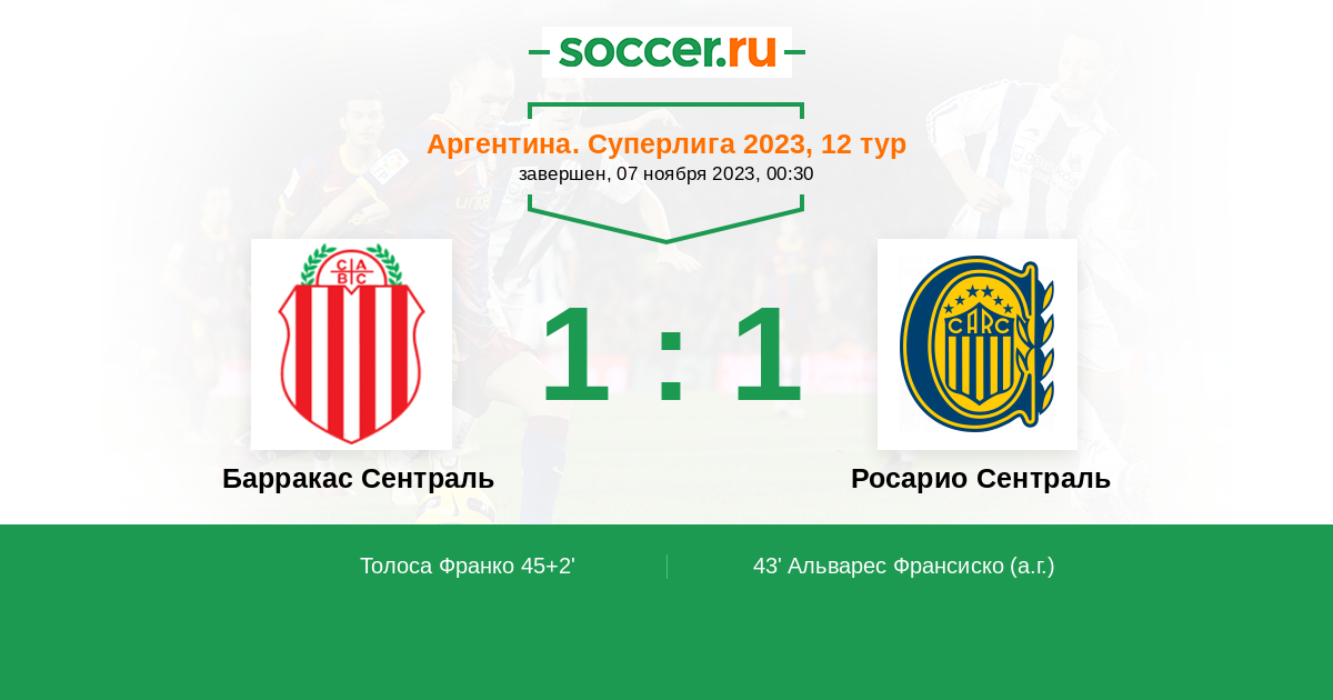 Протокол матча Барракас Сентраль против Росарио Сентраль