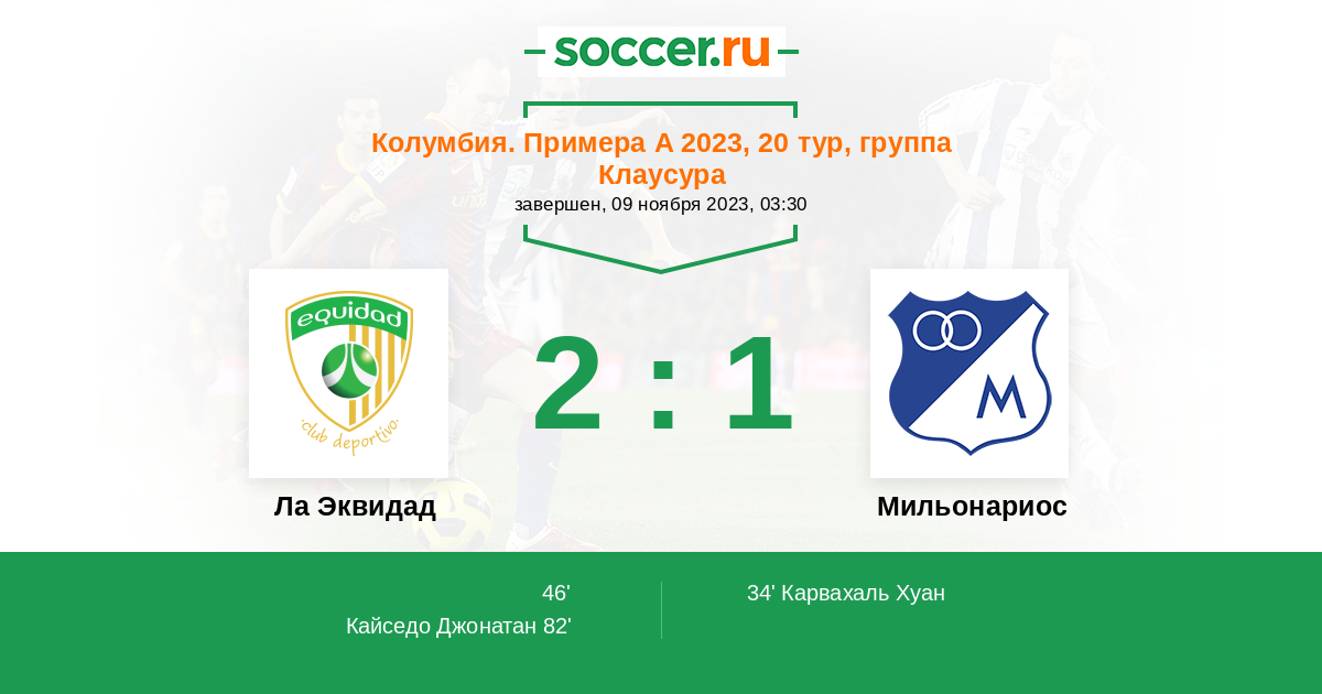 Гол82' (2:1) Кайседо Джонатан (18) (Махеча Хуан (24))