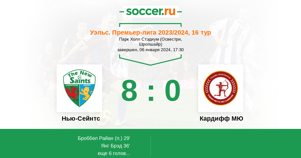 Протокол матча Нью-Сейнтс против Кардифф МЮ