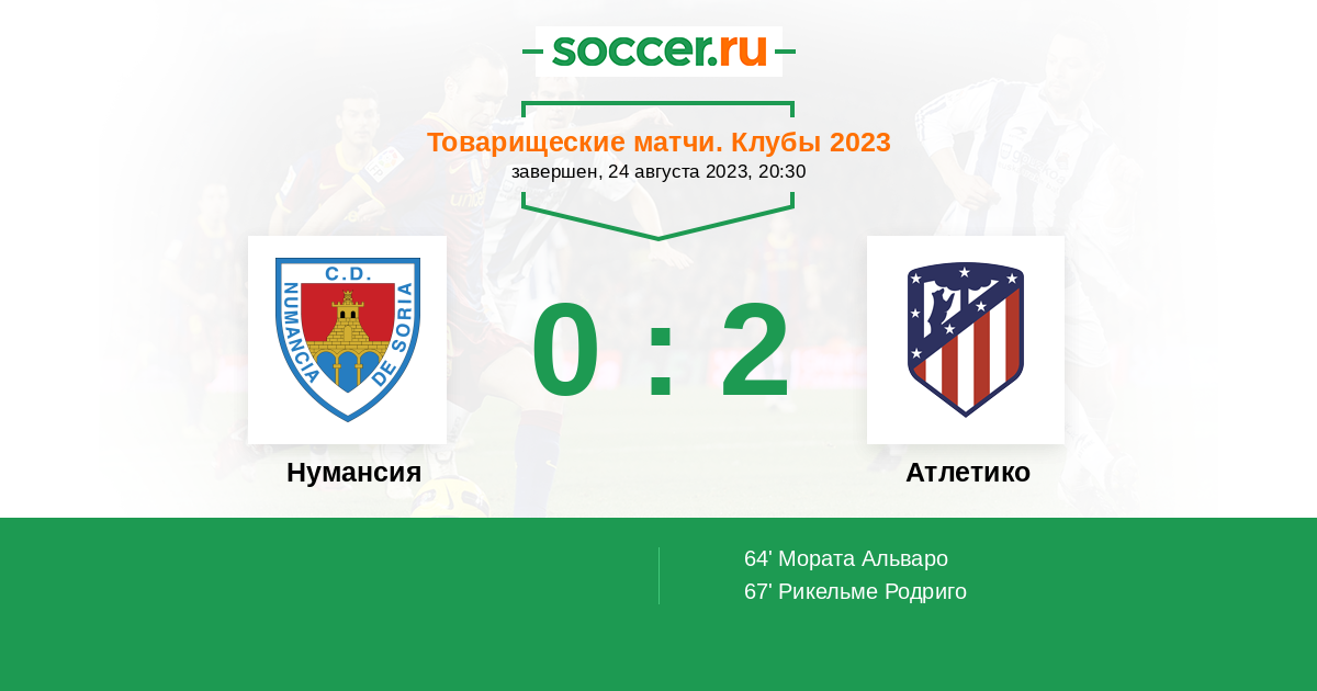Протокол матча Нумансия против Атлетико