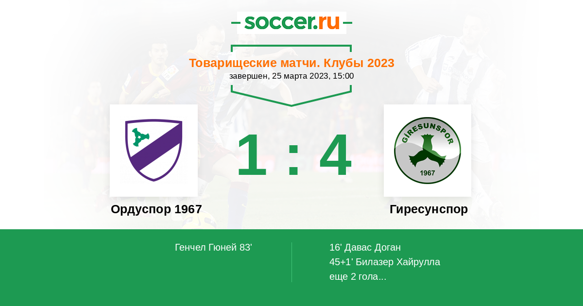 Протокол матча Ордуспор 1967 против Гиресунспор