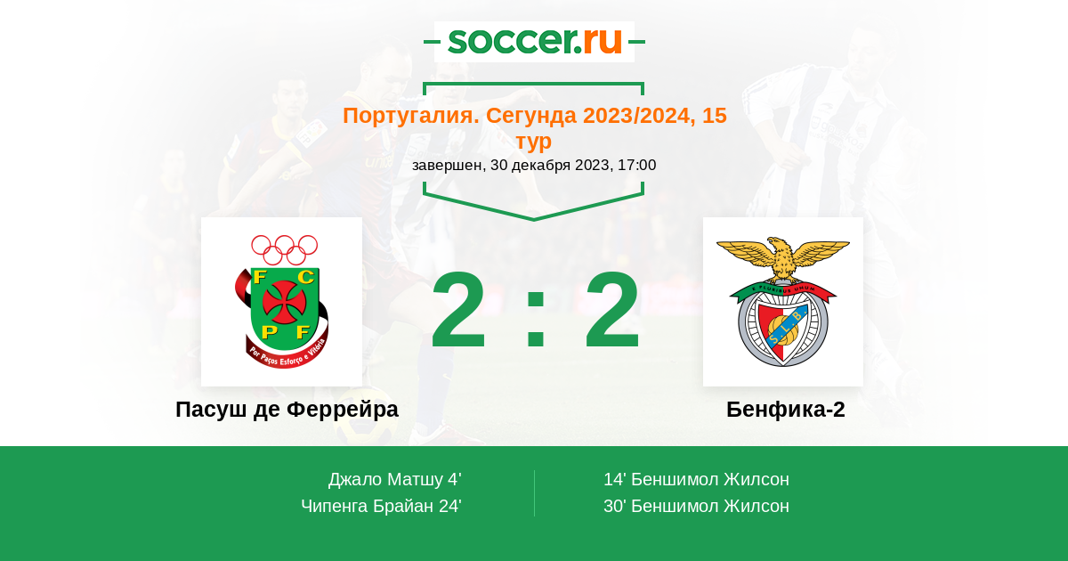 Протокол матча Пасуш де Феррейра против Бенфика-2